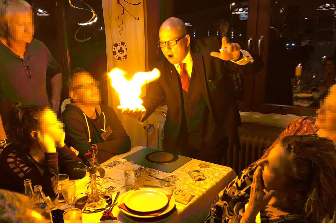- Stand-up-Zauberei zwischen den Menue-Gängen